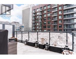 Welcome to #507 at Artworks Tower! Fully furnished one-bedroom condo with one of only a handful of oversized private terraces in the building. A well-regarded Daniels-built residence, located in revitalized Regent Park. 541 square feet of thoughtfully laid-out living space. West-facing, with walk-out to huge terrace (large enough to entertain, dine outdoors, or simply relax in the open air). Open-concept living, dining, kitchen. Full kitchen setup with stainless steel appliances, quartz countertops, and dishes & cookware included. Unit comes fully furnished with bed, sofa & coffee table, work desk & monitor, kitchen bar stools, TV & entertainment unit, patio furniture, and more! Storage locker included. BUILDING AMENITIES: Gym/fitness room with cardio equipment, free weights, separate yoga/fitness studio, and outdoor workout area. Co-working room. Gardening room. Party room. Dining room. Caterer's kitchen. Arcade room with pinball, classic arcade games, ping-pong, billiards, and basketball - all free to use! Kids' room with play structure and giant Lite-Brite. Outdoor terrace with BBQs and kids' play structure. Bike storage. Visitor parking. 24-hour concierge. GREAT LOCATION: Steps to the Regent Park Aquatic Centre, Regent Park, and the neighbourhood's active green spaces. Dundas streetcar right at your door for easy downtown access. Close the DVP & Gardiner. Short walk to Corktown, Cabbagetown, Leslieville, and some of Toronto's best cafes, restaurants, and shops. Easy access to everything the city has to offer. (id:47351)