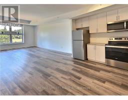 Explore comfortable, modern condo living in the inviting village of Ayr at Piper's Grove, located at 88 Gibson Street. This well-designed MacLean layout is situated on the top (5th) floor and offers 1 bedroom, 1 bathroom, and a bright, open-concept living space with approximately 885 sq ft. The kitchen, dining, and living area is flooded with natural light from large windows and opens onto a spacious private balcony-perfect for enjoying your morning coffee or unwinding at the end of the day. The stylish kitchen features sleek white cabinetry extended to the ceiling, quartz countertops, a neutral backsplash, and ample prep space. Contemporary lighting over the dining area enhances the modern aesthetic. The primary bedroom offers convenient access to a 4-piece bathroom, creating a comfortable and efficient layout. Additional highlights include luxury vinyl plank flooring throughout, in-suite laundry, wide doorways for wheelchair accessibility, and one covered parking space. Residents enjoy a secure building entrance with intercom system, as well as a welcoming main-level amenity room complete with a kitchenette and washroom-ideal for gatherings or entertaining. Located at the end of Gibson Street, this condo is steps from Centennial Park, the Campbell Trail, the Nith River, Watson Pond, and Jedburgh Dam. Enjoy the charm of Ayr's downtown core while benefiting from quick access to Highway 401 and a short drive to Cambridge, Kitchener, Brantford, and Woodstock. (id:47351)