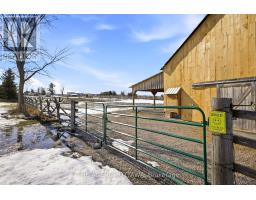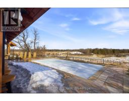 A commanding and breathtaking 85 acre equestrian estate awaits you amongst rolling hills and a tree lined entrance showcasing incredibly well maintained paddocks, riding rings, and an updated heritage barn - all leading to a 4 bedroom home oasis equipped with over 4000 sqft of living space. A stone and timber architectural masterpiece surrounds your very own private inground saltwater pool, hottub, putting green and outdoor living area equipped with a gourmet outdoor kitchen, pizza oven and a floor to ceiling jaw dropping fireplace to gather with loved ones. A custom wrought iron fence establishes where your oasis meets landscape with breathtaking views of the natural surroundings and your very own private pond.This equestrian estate is thoughtfully outfitted providing the utmost care and amenities for horses and their smaller animal mates alike. Each paddock has its own equine shelter with electricity, heat, and water. Two private drilled wells service all farm amenities. The large restored barn is turnkey ready with custom large horse stalls, 2 tack rooms, feed prep area, lockers, and large field shelters accompanying each custom paddock. From horses to chickens, this farm estate accommodates all. The entire property is fully fenced and just minutes from the historic downtown of Almonte where you'll find cobblestone streets, heritage architecture, fine dining, quaint coffee shops and boutiques, and where many hallmark movies are shot. This is where peaceful equine luxury meets community and convenience. A true rarity presents itself here - 85 acres of lush landscape, restored equestrian infrastructure with top of the line features and amenities, and an updated home oasis with your very private entertainment pavilion. Request The Farm&Estate Details portfolio for full details, floor plans and updates. Private bookings now available. (id:47351)