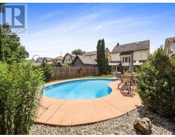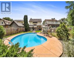 Welcome to a truly special home where timeless character and thoughtful upgrades meets exceptional outdoor living. Set on a beautifully landscaped lot, this property offers a private backyard oasis complete with a kidney-shaped inground pool, sunroom, extensive concrete work, and lush gardens-perfect for relaxing or entertaining all summer long. The impressive curb appeal is enhanced by Trillium Award-winning gardens. Inside, the main floor features a warm and inviting formal living room with hardwood floors, gas fireplace, and coffered ceilings, with patio doors leading to a charming front porch ideal for morning coffee or evening cocktails. The spacious eat-in kitchen offers an abundance of quality cabinetry, built-in appliances, island, and opens to a cozy family room designed for everyday living and entertaining. Upstairs, the second floor includes a massive primary bedroom, a 4-piece bath with jacuzzi tub and separate shower, an open den/office (easily converted back to a bedroom), and an additional walk-in closet. The finished third floor provides excellent bonus space for a guest suite, playroom, gaming area, or extra bedroom, along with additional storage. The finished basement features a rec/games room, 3-piece bath, laundry area, and workshop. Additional updates and features include furnace (2023), central air (2022), and a concrete driveway. (id:47351)