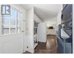 Welcome to 509 Cunningham Crescent, a well-maintained bungalow-style mobile home offering over 900 sq. ft. of comfortable living space in a quiet, friendly neighbourhood just minutes from the amenities of Cobourg and Port Hope. This 2-bedroom, 2-bathroom home features a thoughtful layout designed for everyday living and entertaining. Walk in through the large screened-in porch before entering the bright, open-concept living area, where the spacious living room flows effortlessly into the eat-in kitchen, creating a warm and inviting central hub of the home. Set on one of the most private lots in the neighbourhood, the property is surrounded by mature trees and beautifully maintained gardens, offering peaceful views and exceptional outdoor enjoyment. The fully fenced yard is ideal for pets, while the fully enclosed three-season deck provides an additional space to relax and unwind. Two additional sheds offer excellent storage solutions, including one insulated shed finished with drywall, perfect for a workshop, hobby space, or extra storage. With its functional layout, private setting, and close proximity to shopping, services, and downtown Cobourg and Port Hope, this home presents an excellent opportunity for those seeking an affordable, low-maintenance lifestyle in a desirable location. (id:47351)
