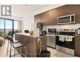 Experience stylish condo living in this bright, spacious suite featuring 9-foot ceilings, sleek laminate flooring, and an open-concept layout designed for modern comfort. The upgraded kitchen showcases quartz countertops, stainless steel appliances, a chic backsplash, and a centre island perfect for cooking and entertaining. Both bedrooms are generously sized, while the primary suite offers a walk-in closet and a private 3-piece ensuite. Enjoy two full bathrooms, contemporary finishes throughout, and unobstructed pond views that add a serene touch to everyday living. This unit also includes 1 parking space and 1 locker for added convenience. Residents of Clockwork Condominiums enjoy premium amenities including a fitness studio, concierge, party room, rooftop terrace with BBQs, outdoor terrace, and pet spa. Ideally located with transit at your doorstep, just minutes to the GO Station and major highways including the 403, QEW, and 407, plus close proximity to shopping, parks, and scenic trails. (id:47351)