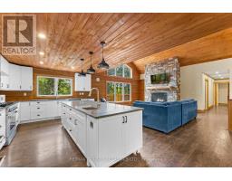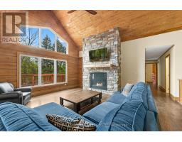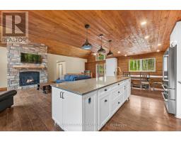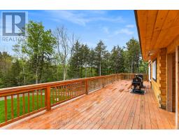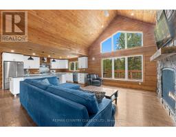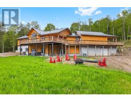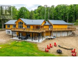Custom built log Discovery Dream Home on a stunning 6.5 acre lot located close to the town of Bancroft for all amenities and just 2 minutes from the Baptiste Lake boat launch. This home is approximately 4,000 square feet with the main floor featuring a bright open concept chef inspired kitchen with center island, dining room, family room with cathedral ceilings and floor to ceiling propane fireplace, a dedicated office with separate entrance, 3 bedrooms, 2 washrooms and a walkout to the double car garage. The property also includes a secondary propane heat source. The fully finished sound proofed walkout basement boasts large rec room with kitchenette and floor to ceiling propane fireplace, three bedrooms each with its own 3 piece ensuite and walkout to the patio and with hot tub. The property offers circular driveway leading to 2 bay garage and large carport, treetop views from every room in the house. Use as your primary residence, getaway or income potential for Airbnb. Also great for a multi generation home. There is a heated 1,100 square foot workshop or garage, energy efficient outdoor wood boiler with in floor heating backup, Generac and durable steel roof. COME AND CHECK OUT THIS AMAZING CUSTOM HOME! (id:47351)