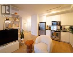 Thoughtfully renovated waterfront condo with stylish, functional living space in one of Toronto's most connected communities. Featuring new hardwood flooring throughout, this well-designed unit offers an open living area, a separate dining space with custom table, integrated seating, and architectural wood paneling, plus a practical kitchen with generous counter space and storage. The living room opens to a private balcony, bringing in natural light and extending the living space. The well-proportioned bedroom is set apart for privacy and includes a custom walk-in closet with excellent storage. Enjoy an unbeatable waterfront location close to the lake, parks, TTC, Billy Bishop Airport, and just a short walk to King West. A polished lease opportunity that blends comfort, character, and convenience. (id:47351)
