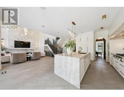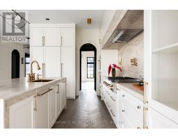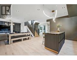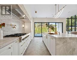 Stunning home upgraded and dressed up to the max. Beautiful French Chateau style curb appeal and extensively landscaped grounds. Luxurious finishes and attention to detail throughout. Big bright windows, custom cabinetry, loads of wall paneling and moldings, stylish stone and tile selections, hardwood herringbone flooring, integrated vents, skylight over the central staircase, beautiful interior design. Gorgeous kitchen with leathered Taj Mahal natural stone quartzite for the counter-top and island. Walk through the servery with walk-in pantry to the dining room with built-in wine rack. Bright 2 storey great room with massive windows and matte porcelain fireplace surround and custom ethanol fireplace. Stylish office with French door entry, built-in wall unit and decorative sconces. All four bedrooms have their own en suites. Luxurious primary suite with fireplace, walk in closet finished with organizers, en suite bath with heated floors, Riobel plumbing fixtures, stand alone tub and two sinks. Convenient laundry room with LG front load washer and dryer. Each of the remaining bedrooms has it's own distinct style. Everything you want is here and done well. 9' ceiling height and big bright window wells. Dramatic bar area with leathered Titanium Gold natural stone quartzite counter tops. Home theatre ideally situated in the quiet dark space excavated under the garage. Home gym with custom mats. 5th bedroom. 3 piece bath with curbless shower. Awesome rec room for entertaining. Custom white cedar sauna. Walkout from kitchen to covered porch. The setting is is like a formal garden in Europe. Fountains and trees. Loads of landscape lighting. Custom cabana with built-in bbq. No house directly behind. Aluminum composite fence. Walk-up from basement. Great atmosphere for entertaining. (id:47351)