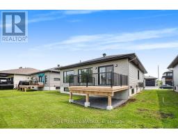 Welcome to this beautifully maintained bungalow in the heart of Casselman, backing onto a peaceful pond with no rear neighbours. This 3-bedroom, 2-bathroom home offers a bright and functional open-concept layout, complete with hardwood floors throughout the main level. The main floor features a spacious living room with a gas fireplace, a dedicated dining area, and a stylish kitchen with sit-at island, walk-in pantry, and patio doors leading to a large deck and generous backyard, perfect for entertaining or relaxing outdoors. Large windows throughout the home provide an abundance of natural light. The 2 beds and family bath on the main level add convenience. The fully finished lower level offers a large rec room, a third bedroom, second full bathroom, and a convenient laundry area, ideal for extended family, guests, or additional living space. Notable upgrades include: gas fireplace, capped half wall at staircase, 200 amp electrical panel, spa kit (50 amp) for hot tub, water softener, laundry tub and rough-in, updated plumbing fixtures in the main bath, and modern light fixtures in the front hall, dining room, side bedroom, and garage. Situated in a quiet neighbourhood with no rear neighbours and tranquil pond views, this home offers comfort, privacy, and quality living just minutes from local amenities. (id:47351)