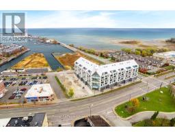 The Best Views in the Building | Day or Night. This is the one everyone talks about. From this unit, you'll watch downtown Collingwood light up at night, see the hills of Blue Mountain glowing in the distance, and take in the harbour with boats and shipyards below. It's a view that never gets old.Set in a modern boutique building completed in 2022, this waterfront condo offers approximately 1,200 sq ft of well-designed living space with 2 bedrooms and 2 bathrooms. The layout is open and inviting, with oversized windows that flood the home with natural light and frame those incredible views from nearly every angle.The kitchen is bright and timeless, finished with classic white cabinetry, quartz countertops with a waterfall edge, a matching quartz backsplash, and a large island that's perfect for both entertaining and everyday living. The open living and dining space flows effortlessly to a 100 sq ft private terrace, creating an ideal spot to enjoy your morning coffee or unwind in the evening as the sun sets over the bay with a glass of wine. A thoughtfully designed built-in desk overlooking the water offers a beautiful and functional space for a home office or creative workspace.Every detail has been thoughtfully finished to create a comfortable, low-maintenance home that suits Collingwood's four-season lifestyle. The building offers excellent amenities including a fitness room, social lounge, guest suites, pet spa, and a rooftop terrace with panoramic views. Secure underground parking adds convenience and storage locker for all your outdoor sporting gear. Just outside your door you're instantly connected to the best of downtown, restaurants, shops, galleries, waterfront trails, and the marina are all just steps away. This is true walkable living, where you can leave the car behind and enjoy everything Collingwood has to offer. (id:47351)