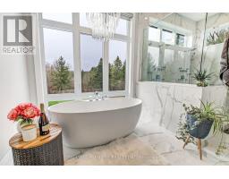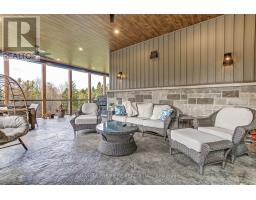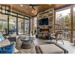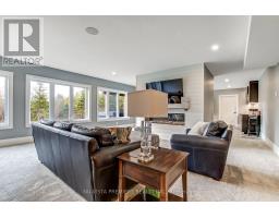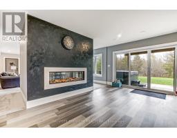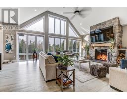 Welcome to this remarkable 24.5 acre country estate featuring two homes, complete privacy, and luxury craftsmanship. A 1,000' driveway leads you into a secluded retreat surrounded by mature forest, over 2 km of trails, and your own private riverside park. Built in 2022, the main home offers 6,486 sq ft with stunning views throughout. The grand foyer opens to a spectacular great room with a full wall of windows and a wood-burning stone fireplace accented by a reclaimed 200+ year-old barn beam. The chef's kitchen includes dual 10' islands, six appliances, custom cabinetry, a large walk-in pantry with dishwasher, and a beautiful wine cellar connecting to the massive dining room. Patio doors lead to a covered porch with a gas fireplace.The main level features a front office, guest room, powder room, and an impressive primary suite with balcony, walk-in closet, and dream ensuite. A custom mudroom/laundry connects to the heated 2,393 sq ft 6+ car garage with a upper loft.The walk-out lower level includes a gym, man cave, movie theatre room, bar with electric fireplace, additional living room with electric fireplace, two bedrooms with walk-in closets and a shared 5-piece bath, a 3-piece bath, storage room, and access to a covered patio. In-floor heat runs through the basement and garage. Smart features include Lennox mechanicals, smart integration, built-in speakers, and central vac.The second home offers 1,345 sq ft with two bedrooms, walk-in closet, beautiful bathroom, open concept kitchen,dining, and living room with electric fireplace, mudroom/laundry, a two-car garage, and a large deck. A separate exterior stairway leads to a finished 625 sq ft loft with a two-piece bath.Outdoor features include a powered pavilion, large firepit area, your own park with river running through and trails throughout the property. An unparalleled blend of luxury, nature, and privacy. Too many features to list. Serious buyers only. (id:47351)
