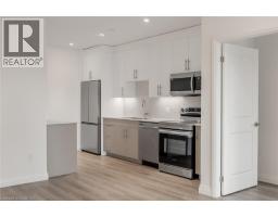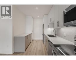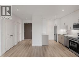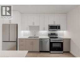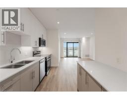 Forget the shovels! Welcome to The Flats at Rainbow Lake- one of Kitchener's best kept secrets. Set within a private lakeside conservation enclave, this stunning 2 bedroom, 2 bathroom suite offers 912sqft (+92sqft balcony) of carpet-free living plus 1 parking space. The bright white kitchen features quartz countertops, stainless steel appliances, sleek backspash and valance lighting, blending modern elegance with everyday funtionality. The Scandinavian-inspired finishes extend from the unit and throughout the building, which is situated on 4.4 acres of lakeside property and surrounded by over 45 acres of protected conservation land, including one of the oldest growth forests in Southwestern Ontario. Enjoy swimming, fishing, canoeing, scenic trails and tranquil lake views right outside your door. Amenities include a co-working space, library, games and party room, outdoor dining and BBQ areas, gym with sauna, bike storage, dog wash station and EV chargers. Ideally located with immediate access to Highway 401 and just moments from transit, shopping, dining and school. Fantastic opportunity to live where nature meets modern living (id:47351)