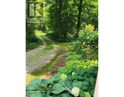 Country roads leading you home. Nestled and tucked away on a wooded 2.7 acres just south of Woodstock in Oxford Centre, this property offers the perfect blend of serenity and style. Along the tree lined winding landway, you'll find two small fish ponds and a spacious campfire area-an idyllic setting for peaceful mornings or evenings spent under the stars.The property features a unique and beautiful detached A-frame home, showcasing a soaring two-story stone fireplace, wraparound decks, and open-concept main floor living. The bright kitchen with the floor to ceiling windows flows nicely into the living area, perfect for entertaining. A separate formal dining room with gleaming hardwood floors also found throughout the main level. The main floor is complemented with an additional office space with direct exterior access making this the perfect spot for those who work from home. An updated bathroom completes the main floor with private views of nature in every direction. Upstairs, the impressive primary retreat includes a second fireplace, a six-piece ensuite, and a walk-in closet along with an additional bedroom . Both rooms feature unique custom architectural roof lines The lower level offers a spacious family room complete with a wet bar, wood burning fireplace, a 3rd bedroom, and a den-ideal for in-law potential-with a walk-up basement leading to the oversized double-car attached garage. Outside, you'll find a large 25' x 40' Quonset building with an RV hookup, a wraparound laneway with ample parking, tons of storage, and unmatched privacy. Don't miss your chance to experience this one-of-a-kind country retreat (id:47351)