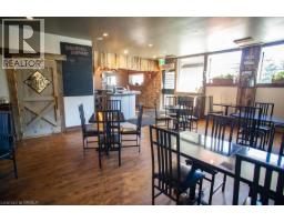 An exceptional opportunity awaits in the heart of Scotland. The Field House Restaurant is a well-established, family-run business known for its quality dining experience, welcoming atmosphere, and strong community presence. Proudly owned and operated by the same family, the restaurant has built a loyal clientele by focusing on fresh ingredients and consistently delivering outstanding customer satisfaction. Step inside to discover a warm and inviting interior, thoughtfully updated with a complete renovation in 2016, including both the dining area and kitchen. A striking stone feature wall anchors the bar area, complemented by a beautiful black walnut countertop—creating a natural gathering space for guests. The main dining room showcases a charming barn board feature wall and offers seating for up to 60 guests, providing both comfort and character. In 2021, an additional dining space was thoughtfully created, ideal for hosting intimate private functions and seamlessly connected to the main dining area. During the warmer months, guests can enjoy the rear patio, which accommodates approximately 20 people, with further potential to expand outdoor seating at the front of the property. The spacious chef’s kitchen is designed for efficiency, offering ample room for food preparation and service, along with extensive indoor and outdoor storage. The property also includes two washrooms, all owned equipment, and generous on-site parking, situated on a sizable 80 ft x 165 ft lot. Ideally located just minutes from Brantford, this turnkey offering presents a rare opportunity to own both a thriving business and the property in the growing community of Scotland. With strong existing operations and room for future growth, this is a standout opportunity for entrepreneurs and investors alike. (id:47351)