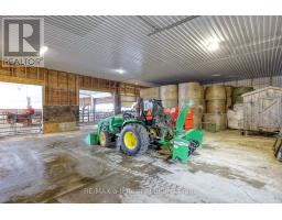 Located just south of Woodstock, this exceptional 5-acre rural estate combines refined country living with first-class infrastructure and turnkey functionality. Set behind a charming white picket fence, the custom-built home offers 4000 sq ft of beautifully finished living space, including four bedrooms, two full bathrooms, a finished basement, and an oversized 27' x 43' attached garage, all maintained to an exceptional standard. The freshly remodeled chef's kitchen features high-end finishes, a spacious pantry, and ample storage, while the massive main-floor office overlooks the landscaped grounds, creating a serene workspace. Outside, mature maple trees, established gardens, and sweeping countryside views can be enjoyed from the expansive rear deck or the covered wraparound porch. Supporting a true rural lifestyle, the property includes approximately 7,300 sq ft of pristine outbuildings, including a heated shop and a versatile barn currently housing beef cattle, with three acres of pasture directly connected to the barnyard, offering outstanding flexibility for livestock, hobby farming, or other rural pursuits. Whether your passion is raising livestock or simply enjoying the tranquility of country living, this estate provides the perfect canvas for your dreams. (id:47351)