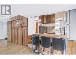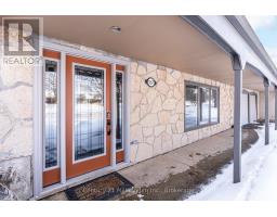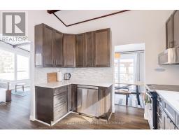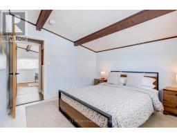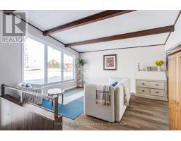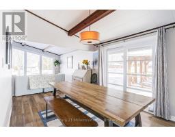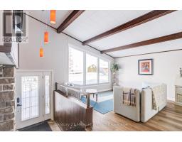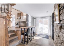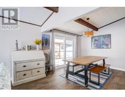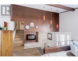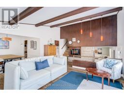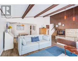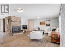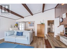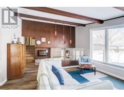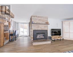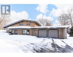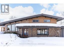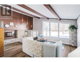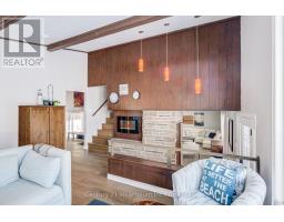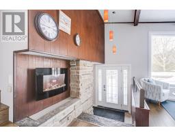 A beautifully finished mid-century modern home with views of Georgian Bay and water access directly across the road. This is not a cookie-cutter home. It's truly one of a kind. Natural light fills the home, highlighting the vaulted ceilings, solid wood beams, and the balance of thoughtful updates with preserved mid-century character. A striking stone entrance leads into the open living and dining space where a mahogany and limestone feature wall creates warmth and definition within the main gathering area. The updated kitchen offers solid wood cabinetry, quartz countertops, generous storage, and new dishwasher. It over looks a second comfortable living space with a stone fireplace, built-in cabinetry, and large windows. A main floor powder room and laundry provide everyday convenience with direct access to the attached two-car garage. Upstairs, three well-sized bedrooms continue the architectural feel with vaulted ceilings and exposed beams. The renovated bathroom is bright and functional with a separate vanity and bath area. The circular driveway offers ample parking, while hydrangeas line the landscaped yard. A welcoming stone patio at the front is perfect for morning coffee. The fully fenced backyard and spacious side yard offer privacy and room to enjoy summer evenings from the gazebo with beautiful water views. Located just minutes from the Bruce Trail and steps to downtown, Wiarton Marina and Bluewater Park, this home offers easy access to trails, boating, swimming, and waterfront amenities in Wiarton's welcoming shoreline community. (id:47351)