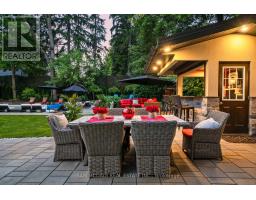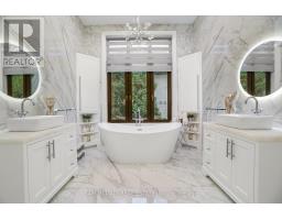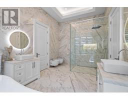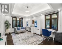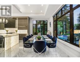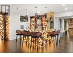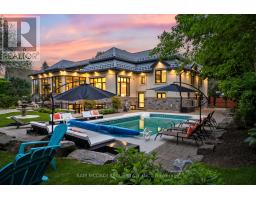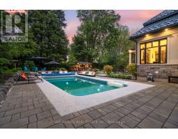 Located in Mississauga's prestigious Rattray Park Estates, 539 Old Poplar Row is a bespoke residence offering 9,000+ sq ft of finished living space on a secluded half-acre lot just steps from Lake Ontario and the trails of Rattray Marsh. Behind solid oak doors, the home unfolds with quiet grandeur beginning with a dramatic foyer dressed in oversized porcelain slabs, hand-laid Versace inlays, and a soaring 20-ft ceiling framed in antique mirror panels and a sculptural chandelier. Thoughtfully curated design elements flow throughout, fluted wall paneling, underlit stone surfaces, and multiple fireplaces that warms the space. The living room stuns with a bookmatched porcelain feature wall, while the formal dining area and four-season sunroom set the tone for elevated, everyday living. The kitchen blends form and function with a glowing stone island, workstation sink, integrated knife block, and custom cabinetry with accent lighting, anchored by a sunlit breakfast room that opens to the backyard oasis. The main floor primary suite is a sanctuary unto itself with dual walk-in closets, and a spa-style five-piece semi-ensuite with direct access to the sunroom for morning coffee or midnight calm. Above, three bedrooms feature walk-in closets and ensuite or semi-ensuite baths, complemented by a private office and full elevator access across all levels. The lower level delivers on lifestyle: a full home gym, theatre, sauna, and showpiece wet bar wrapped in underlit gemstone with a floor-to-ceiling illuminated display. Outside, enjoy a heated saltwater pool, cabana bar with built-in grill, beverage centre, and media wall, framed by mature trees and a heated driveway for year-round ease. A home of this stature surpasses your expectations and redefines them. Enjoy being moments from top-rated schools, lakefront trails, and the vibrant offerings of Port Credit and Clarkson Village, this is where design, location, and lifestyle converge. (id:47351)