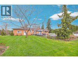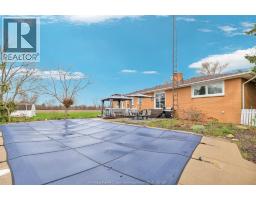 Full brick ranch on a private ½ acre along Mersea Rd 12, on your way to Point Pelee National Park and steps from Lake Erie. This 3+2 bedroom home offers hardwood floors, oversized windows, and a stunning new kitchen with granite counter tops and hidden walk-in pantry. Main level features multiple living spaces with a charming, classic fireplace that adds warmth and timeless character to the space. Finished lower level includes 2 bedrooms, full bath, laundry, and expansive rec/games room with fireplace. Enjoy an in-ground pool with gas BBQ hookup, heated attached 2-car garage, and wide/long finished driveway. Located near Mersea Park with a new splash pad, parks, soccer fields, marina, golf, wineries, and all Leamington amenities. (id:47351)