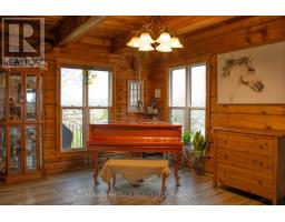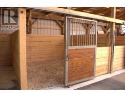 Welcome to an exceptional 103-acre equestrian and agricultural property offering privacy, versatility, and income potential. A scenic tree-lined driveway leads to this peaceful countryside setting, surrounded by expansive open fields ideal for horses, cattle, sheep, or mixed livestock. The property is well equipped for equestrian use with a brand-new three-stall stable featuring 12' x 12' stalls and a concrete walkway, with capacity to add additional stalls. A 60' x 100' arena built in 2022 offers excellent space for riding, training, and lessons, while also providing outstanding flexibility for agricultural use. The arena is well suited for livestock handling, winter feeding, lambing or calving, equipment storage, or other multi-purpose farm uses. Multiple paddocks with electric fencing and three run-in shelters support efficient grazing and herd management. The acreage offers strong potential for rotational grazing, with approximately 30 acres already in hay production, supporting scalable livestock operations while maintaining a premium equestrian setup. The upgraded log home blends rustic charm with modern comfort, featuring an open-concept eat-in kitchen with granite countertops, island, and walkout to a deck overlooking gardens and fields. The dining room includes a propane fireplace and large picture windows. The primary bedroom offers a three-piece ensuite and two additional bedrooms. The lower level features a separate entrance, family room, and potential bedroom, ideal for an in-law suite or added living space. A rare opportunity to own a versatile farm combining equestrian and livestock potential with peaceful country living. (id:47351)
