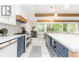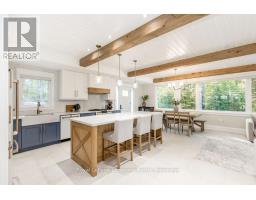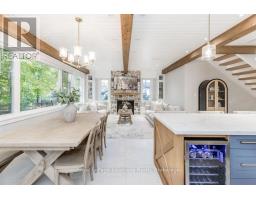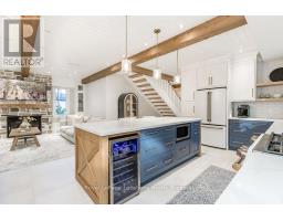 DREAM HOME WITH HEATED DRIVEWAY & WALKWAYS - Welcome to this stunning, custom-built 3 bed, 3 bath home showcasing exceptional craftsmanship, built in 2023, perfectly positioned backing onto protected land & directly across from the river in beautiful Wasaga Beach. Designed w/ a mix of modern luxury & timeless character, this home captures a century-home feel with its large mouldings, custom doors & wood beams w/ a custom-built stone fireplace accenting the main floor. Inside, the bright open-concept layout features wall-to-wall windows overlooking the forest, flooding the space w/ natural light. The custom kitchen is a true showpiece, showcasing a large quartz island, blue & white cabinetry, a mini wine fridge, & a full quartz backsplash. It's finished w/ a high-end signature line of Wi-Fi-enabled appliances, combining elegance & smart convenience for the modern homeowner. The dining area sits beside large windows, while the living room offers aged wood ceiling beams and tongue-and-groove ceilings that bring warmth & texture throughout along w/ the wide-plank white oak hardwood. Upstairs the hardwood stairs, lead to spacious bedrooms, each w/ custom walk-in closets, built-in desks, shiplap ceilings, & designer touches like wallpaper accents & skylights. The primary suite feels like a retreat, featuring a cozy fireplace, luxurious ensuite w/ floating tub, double quartz sinks, black cabinetry, & a walk-in closet w/ custom cabinetry & make up desk perfect for getting ready for the day.Luxury features include- Inside entry to garage with epoxy flooring + custom storage, hydronic in-floor heating, heated driveway & walkways while outdoors, enjoy the built-in BBQ, rubberized surfacing on patios w/ hot tub hook up, sprinkler system, & tranquil forest backdrop w/ cedar trees surround the patio for privacy.Interior features include motorized blinds, smart home system, security cameras, spray-foam insulation, high-efficiency boiler system, & a hard-wired generator. (id:47351)