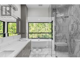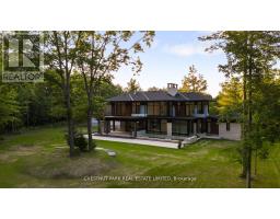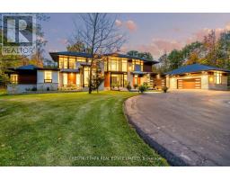 Over 11 acres - set in a premium location, on a highly coveted road in Uxbridge, this contemporary modern David Small Designs masterpiece was meticulously crafted with no expense spared. Newly constructed custom residence boasting 4+1 bedrooms & 6 bathrooms. The elegant facade features clean lines, organic textures, & expansive glass windows. Accentuated by rich wood tones & limestone detailing, this home blends beautifully into the breathtaking landscape. Upon entry, soaring ceilings & abundant natural light greet you. The gourmet kitchen & servery combine functionality with luxury. Two primary suites featuring walk-in closets, gas fireplaces, 5 piece ensuite, & private outdoor space. 3 more bedrooms, each with an ensuite & walk-out to decks. The lower level offers an unparalleled entertaining experience featuring a fully equipped second kitchen, recreation room & access to the outdoors. This premier resort-like property provides seamless indoor/outdoor living. Both an entertainer's dream & a private oasis, the outdoor space encompasses a large grassy yard & a stunning cabana, with a fireplace feature, an outdoor kitchen, & dining space. The estate promises leisure & luxury for friends, family, & party guests. The main house garage & second attached garage fit 5 cars. Only a 45 minute drive to Toronto, this residence stands as a testament to luxury living, seamlessly fusing technology, design, & comfort for an unparalleled living experience. **EXTRAS** Recreational options are boundless with cut trails throughout the entire property. The property backs onto lush conservation land and trails, enhancing its serene, countryside appeal. Minutes away, is the vibrant community of Uxbridge. (id:47351)