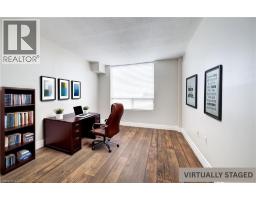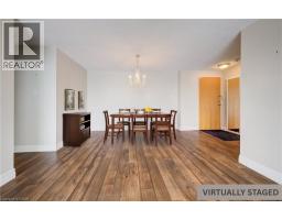 Relaxed, maintenance-free living awaits at The Atriums in Waterloo. This spacious 2-bedroom, 2-bathroom condo with 2 PARKING SPOTS offers tranquil views of beautifully wooded grounds, walking trails, and the soft glow of city lights. Abundant natural light fills the generous living and dining areas- perfect for quiet mornings, hosting family, or entertaining friends. The thoughtfully updated flooring provides a clean, modern look while making day-to-day maintenance simple and easy. The kitchen offers ample storage space and the dinette nook is perfect for breakfast and your morning coffee. The primary bedroom is a true retreat, featuring two closets and a renovated ensuite bathroom with a convenient sliding glass shower door. A second updated 4-piece bathroom offers comfort and accessibility for guests or family visits. The spacious 2nd bedroom is ideal as a guest room or a home office. Enjoy the convenience of in-suite laundry, two owned parking spaces, and a large main-floor storage locker, ideal for seasonal items. This well-managed building offers outstanding amenities designed for comfort and community, including controlled entry, a library, workshop, bicycle storage, covered parking, and a beautiful rooftop lounge and sun deck. Two fully equipped party rooms provide wonderful spaces for gatherings and celebrations. Ideally located close to shopping, restaurants, medical services, and scenic walking trails, with easy access to Highway 7/8 and Highway 401, this home offers the perfect balance of peaceful surroundings and everyday convenience. A wonderful opportunity to enjoy a relaxed, secure, and low-maintenance lifestyle in one of Waterloo’s most sought-after condo communities. (id:47351)