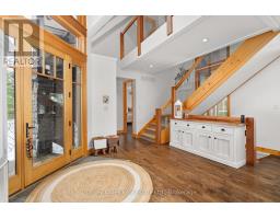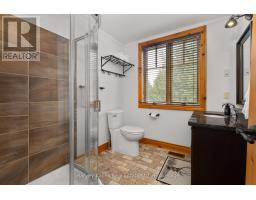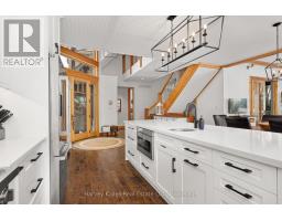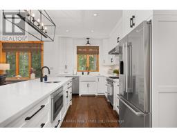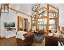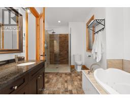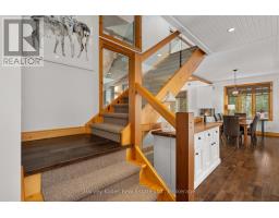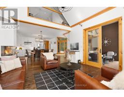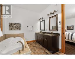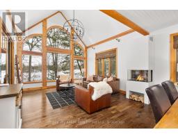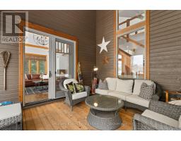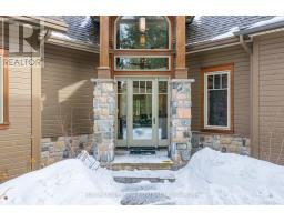 Experience elevated living in this 4 bed, 5 bath custom upscale home, perfectly positioned to capture views of the Deerhurst Highlands Golf Course. Set back from the road on a private lot, this impressive 3400sqft residence boasts a modern design and thoughtful functionality, complemented by a warm Muskoka feel. The main floor showcases an inviting open-concept layout anchored by an updated kitchen with a convenient new pantry and ample storage throughout. The spacious living area, highlighted by a gas fireplace, provides the perfect setting for gathering with family and friends. Expansive windows flood the interior with natural light and frame the lush fairway backdrop, while the screened Muskoka room extends the living space. The primary bedroom is conveniently located on the main level, featuring a luxurious 5-piece ensuite and walkout access to the tranquil outdoors. On the second level, two additional bedrooms offer privacy and comfort, each thoughtfully designed with a 3-piece ensuite bathroom and a multipurpose loft space that is ideal as an office, TV room, or games room. The walkout lower level expands your living space with a family room featuring a second gas fireplace, direct access to the hot tub and yard, an additional bedroom and full bath, plus in-floor heating available (not currently connected). Additional highlights include municipal water and sewer, natural gas forced-air heating, a wired generator, a double-car attached garage, full outdoor irrigation system and a fenced front yard. Live just minutes from skiing, golf, and lake access, and enjoy a practical, well-designed home in a sought-after Muskoka setting. (id:47351)