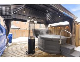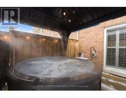 Offers anytime! Nestled in a secluded enclave in the desirable "Imagination" community in Northeast Ajax. Surrounded by an extensive trail system, parks, schools, and walking distance to Audley Recreation Centre. Meticulously maintained by its original owner, this inviting executive townhome offers a bright and functional layout with many upgrades throughout. The main level features a spacious living room with soaring 10 foot ceilings, pot lights, hardwood flooring, wiring built-in for surround sound speakers, and a large west facing window, filling the space with natural light and creating a welcoming atmosphere from the moment you step inside. A well-appointed kitchen with stainless steel appliances serves as the heart of the home, featuring ample upgraded cabinetry and a breakfast bar, flowing seamlessly into the dining area that overlooks the backyard with a juliette balcony. Upstairs, the massive primary bedroom includes a 4 pc ensuite bath with a glass shower and soaker tub, and wall-to-wall closets for lots of storage. The large secondary bedroom has access to its own 4pc bathroom. The finished lower level adds valuable living space - perfect for a recreation room, home office, or guest area. Walkout to the backyard sanctuary featuring a relaxing hot tub covered by a steel gazebo - an ideal outdoor entertaining area for summer barbecues. Other notable features include California shutters throughout the home, hardwood oak stairs, interior access to the garage, and no sidewalk to maintain. With easy access to shopping, transit, major highways, and community amenities, this home combines suburban tranquility with everyday convenience. A wonderful opportunity to own a move-in-ready home with friendly and quiet neighbours in one of Ajax's most desirable communities. POTL fee $254.30/ month. It includes roof repair/replacement, downspouts, lawn mowing (in the front), common area maintenance, laneway snow removal, garbage removal, building insurance. (id:47351)