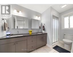Offering 5 bedrooms and 3 bathrooms, this move-in-ready bungalow showcases thoughtful upgrades, meticulous care, and a seamless blend of style, comfort, and everyday functionality. Step into a sun-filled, open-concept main floor where the family room-anchored by a tray ceiling with pot lights-flows effortlessly into the dining area and chef-inspired kitchen. The kitchen impresses with terrazzo-quartz countertops, a composite granite double sink, premium cabinetry, and a stylish tile backsplash-perfect for entertaining or daily living. The main-floor primary suite is a true private retreat, featuring a spacious custom walk-in closet and a spa-like ensuite with a double vanity, his-and-hers sinks, and a sleek stand-up shower. Downstairs, the bright and expansive lower level extends your living space with a large rec room, a full bathroom, and three generous bedrooms, including one with its own walk-in closet-ideal for guests, teens, or a growing family. Outside, enjoy a deep, fully fenced backyard (2021) designed for relaxation and entertaining, complete with a composite deck, three-panel patio doors, stamped concrete patio, and ample green space. The triple-wide concrete driveway and insulated double-car garage provide exceptional parking and storage convenience.Notable upgrades include custom living room cabinetry (2021), front landscaping (2023), and a refreshed kitchen backsplash (2024). Located in a highly sought-after neighborhood close to schools, parks, shopping, CFB Trenton, and Hwy 401-and just a short drive to Sandbanks, Presqu'ile, and North Beach Provincial Parks-this home is perfectly suited for families, professionals, and outdoor enthusiasts alike. A rare opportunity to own a beautifully finished home in an unbeatable location-don't miss it. (id:47351)