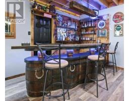 Welcome to this beautiful 4-bedroom (3+1), 4-bathroom family home offering exceptional space, comfort, and functionality for today's lifestyle. From the moment you arrive, you'll be drawn in by the serene front yard pond-creating a peaceful, welcoming setting enhancing the home's charming curb appeal. Inside, the home is filled with natural light and features a thoughtfully designed layout with generously sized rooms throughout. The bright kitchen offers ample cabinetry, abundant counter space, & generous breakfast bar-ideal for busy mornings or casual entertaining. The separate dining area is highlighted by a stunning double-sided wood-burning fireplace and garden doors that lead to a deck overlooking the beautifully landscaped backyard, with easy access to nearby trails. Fencing already in place-perfect for children &/or pets. The inviting sunken living room showcases vaulted ceilings, large windows with scenic views, oak flooring and railings-creating a welcoming space for family gatherings. New waterproof vinyl plank flooring has been installed in several areas, adding both style and durability. The primary bedroom serves as a private retreat, complete with a 4-piece ensuite. Two additional bedrooms and a full 4-piece bath provide ample room for the whole family. The main floor is completed by a spacious foyer with plenty of closet space. Enter from the garage for quick access to a generous laundry/powder room. The lower level offers impressive additional living space, featuring a massive entertainment area and a dedicated gym with walkout access to the back. Enjoy year-round relaxation in the covered hot tub area. Also features a fourth bedroom (currently used as an office), 3-piece bath, cold storage, workshop/utility space-offering excellent in-law suite potential.For those needing extra space, the property includes both a double attached garage & detached insulated garage (2011)-ideal storage, recreational vehicles/boat. This home has it all. A must-see! (id:47351)