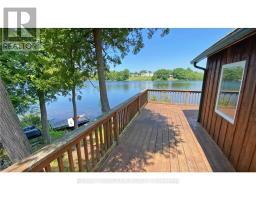 End of Season Sale! Dream cottage on beautiful Graceys Island! This custom built 3 season cabin with water on 3 sides comes furnished. Sitting on 1.8 acres, this special property offers amazing privacy and a incredible view of Sharbot Lake. It has 1 loft bedroom and one on the first floor, bathroom, open living area with hardwood floors, wood stove for those cooler nights, and kitchen with gas range and propane fridge. Relax on the deck while enjoying the cool breeze off the lake. An additional bunky (with bunk bed) is perfect for additional guests. Your days will be filled enjoying your favourite water sports, swimming and fishing with family and friends and in the evening take in the local restaurants and shops of Sharbot Lake thats only a quick 5 minute boat ride away. (id:47351)