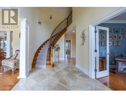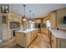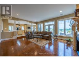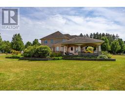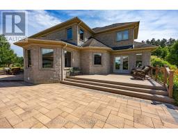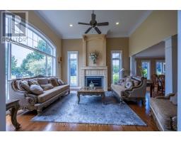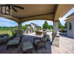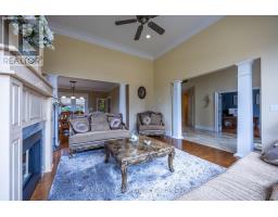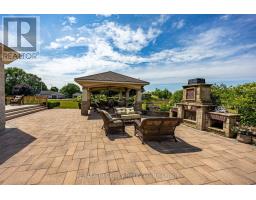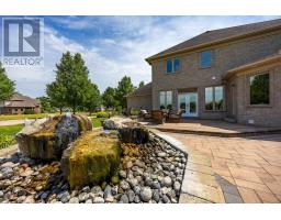 Luxurious Estate with outdoor living oasis, dual garages and premier security. Welcome to your dream home. An exquisite estate that perfectly balances luxury, privacy, and everyday functionality. Designed for both families and sophisticated entertaining, this executive home offers spacious, thoughtfully planned living areas. As you enter the grand foyer a striking spiral staircase serves as a dramatic architectural focal point, leading to three generously sized bedrooms and two elegant bathrooms. Two floor-to-ceiling gas fireplaces enhance the ambiance in both the family room and formal living room, providing warmth and style. The formal dining room offers a warm and elegant space for family gatherings and entertaining guests, with room for a large table and decor suited to any occasion. A versatile den/home office provides a quiet and private area, ideal for working from home, studying, or managing daily tasks designed for comfort and productivity in mind. At the heart of the home, the expansive kitchen impresses with built-in appliances, quartz countertops, a walk-in pantry, breakfast bar, and a sun-filled dining area. The lower level boasts heated floors throughout the recreation room, games room, and bathroom ensuring year round comfort. Walk-up from basement to garage. The exterior is equally remarkable, featuring professionally landscaped grounds, a wide circular interlocking brick driveway and a stately brick facade that leaves a lasting first impression. The backyard is designed for connection, with multiple gathering area and a bubbling rock water feature. Water gently bubbles from the tops of three hand-selected stones, creating soothing sounds and a peaceful atmosphere an eye-catching focal point that blends naturally with the surrounding greenery. Enjoy dining in the covered, custom-built outdoor kitchen. The additional detached garage/shop offers extra space for vehicles, workshop or custom storage solutions. (id:47351)
