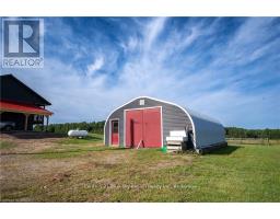 Working 60+ acre hay farm with approximately 30 acres cleared and in production. Fenced paddocks and pastures currently support five horses, with room to expand. A 23' x 60' barn provides excellent hay storage and includes a horse run with direct paddock access. The custom-built two-bedroom home features a maintenance-free exterior, drive-through side carport, and covered front carport. Inside, the open-concept kitchen and living area are highlighted by 10' vaulted pine ceilings, creating a bright, welcoming space filled with natural light. Patio doors open to a 10' x 34' wrap-around covered deck connected to a 32' x 6' porch, overlooking scenic pastures and woods-ideal for relaxing or entertaining. The fully finished basement offers a large rec room with an electric fireplace and a rough-in for a wood stove or fireplace, an additional bedroom, a utility room, and generous storage. Comfort features include forced-air propane heating, central air, and a new heat pump. A practical 6' recessed boot and shoe area is located at the main entrance. Dug well (4-5 tiles deep) with sediment filtration system. 200-amp electrical service. Direct access to ATV and snowmobile trails connecting to the Ontario trail system-no trailering required. A 28' x 32' Quonset garage with its own fuel tank and pump provides ample storage for equipment and recreational vehicles. Additional garden and tool sheds included. Sale includes a 60 HP tractor with cab, A/C, bucket, hay pick, snow blower, backhoe, brush hog, plus hay equipment, including a 9' blade, rake, baler, and approximately 80 bales of hay. Productive land, solid infrastructure, and strong potential for expanded or diversified farming make this an excellent rural lifestyle and income opportunity. This could be your retirement hobby farm, ideal for other livestock, chickens, cattle, pigs, vegetation or just your own space for your ATV touring on your property. Worth a look only 25 minutes from North Bay or 15 minutes from Mattawa. (id:47351)