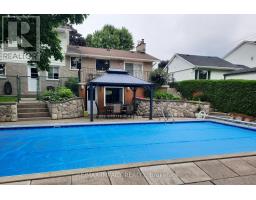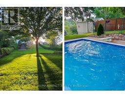 Nestled on a stunning .57 acre RAVINE lot backing onto STREAM in Orono, this 4-level sidesplit offers an idyllic retreat for families and commuters alike. With a generous living space of 2076 sf, with 1515 sf on the main levels plus a beautifully finished WALKOUT lower level. This property boasts an inviting heated 18'x36' I/G pool surrounded by a patio and gazebo, plus stone firepit, creating a perfect summer oasis with no need for a cottage. The inviting foyer, with its leaded glass insert and side lites, welcomes you home! The kitchen is a delight, featuring abundant oak cabinetry, a ceramic backsplash, and a pantry with pull-out drawers. A spacious dining area opens to a deck with ceramic base, leading to the patio and gazebo by the pool. The bright living room showcases hardwood floors, a large front picture window, and a built-in bookcase. From the main level which features a convenient 2-piece powder room and office or 4th bedroom, there is direct access to the rear yard and extra deep single garage. Upstairs, there are 3 good-sized bedrooms with a full bath and several hall closets. The lower level, redone about 10 years ago, features a family room with gas fireplace accented with a stone wall, separate shower with glass doors and small vanity, front above-grade windows, and a walkout to the rear yard, plus several storage/utility rooms. Parking is a breeze with space for 8 cars, plus a gravel area for your recreational toys. The home features plaster walls and drywall on the lower level. Recent updates enhance its appeal, including upgraded shingles (2011), maintenance-free windows (2013/14), a new pool liner (2017), a pool filter replacement (2018), a new pool heater (2019), new pool pump (2024), and the driveway was paved (2018). Other recent improvements include a new owned HWT (2022), stainless steel appliances (2023), and a new gas furnace (2024). Additionally, a 200-amp electrical service and central air conditioning installed (2025). (id:47351)