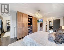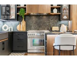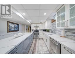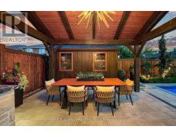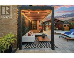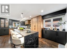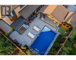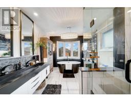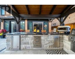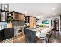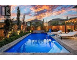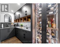 Embrace a truly breathtaking family home, redesigned top to bottom with luxurious high-end finishes. Remodelled in 2023, the custom kitchen stuns with its two-tone black and walnut-style cabinetry, leathered quartzite counters and backsplash, Thermador appliances, an oversized panelled fridge/freezer, panelled dishwasher, beverage fridge and walk-in servery with prep sink and glass wine cellar. The grand island and coffee bar feature accent lighting and overlook the designer backyard, setting the tone for effortless hosting and day-to-day enjoyment. Step outside and feel like you've arrived at a private resort. A 12' x 22' in-ground saltwater pool (2020) with a waterfall feature is surrounded by premium interlock, a pergola, and custom cabana complete with stone outdoor kitchen, built-in BBQ, beverage fridge, leathered quartzite counters, covered dining area and garden irrigation system. Every detail is meticulously crafted. The exterior front has been refaced with modern stone veneer and walnut-style siding, paired with a large interlock driveway with concrete underlay and full landscaping (2023) - creating show-stopping curb appeal. Inside, elegant porcelain tiles and engineered oak hardwood elevate the main level. A main-floor office/den, feature walls with accent lighting, and a grand staircase with wrought iron spindles, custom panelling and waffle ceiling add refined ambiance. Upstairs, four spacious bedrooms await. The luxurious primary suite offers a spa-like ensuite with electric heated floors, double vanity, freestanding tub, large glass shower and built-in storage. The fully finished basement features a modern kitchen with stainless steel appliances, wet bar, gym room, upgraded 3-piece bath, two large cold cellars and a separate walk-up entrance - perfect for in-law suite or rental potential.Located in a fantastic Woodbridge location with south exposure, minutes to Hwy 400/407, great schools, parks and everyday conveniences. Furniture negotiable. (id:47351)
