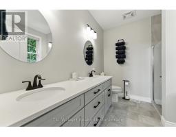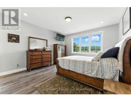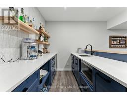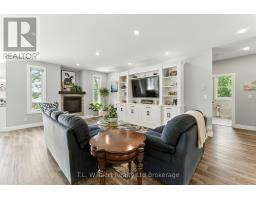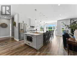 Stunning Modern Executive Home in Eden! Nearly 3,500 sq. ft. on a .79 Acre lot nestled in the friendly village of Eden, just south of Tillsonburg, this luxurious modern executive residence offers beautifully designed living space. Inside, an impressive open-concept layout showcases a custom chefs kitchen with marble countertops, oversized island, and premium cabinetry, flowing seamlessly into the elegant dining and living areas. A striking gas fireplace and expansive windows create a warm, inviting atmosphere filled with natural light. The primary suite is a private retreat, featuring a spa-inspired 5-piece ensuite with a soaker tub, walk-in shower, dual vanities and in-floor heating, along with a spacious walk-in closet. Two additional bedrooms, a 4-piece bath, and convenient main-floor laundry complete the thoughtful main level design. High-end upgrades include engineered LVP flooring throughout the main floor and exquisite finishes that make this home truly mesmerizing. The fully finished lower level is designed for both relaxation and entertaining, boasting a grand open-concept recreation room with custom built-ins and gas fireplace. The sophisticated wet bar with floating shelving, built-in microwave, wine fridge, and beer fridge elevates every gathering. A premium laminate finish, an additional bedroom, a luxurious 3-piece bathroom with walk-in shower, and abundant storage complete this remarkable space. Outdoors, enjoy the serenity of the private lot with mature trees, complemented by a large deck overlooking open fields and nature beyond the perfect backdrop for private entertaining or peaceful escapes. A spacious two-car garage offers ample parking and storage. Quietly situated on a dead-end street, near a local playground and scenic walking paths along a historic rail line, this property beautifully blends privacy, elegance, and small Village charm. (id:47351)