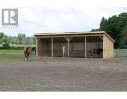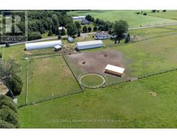 Exceptional equestrian estate sitting on over 61 acres of serene countryside, conveniently close to Hwy 401, 407, 115/35, shopping, schools, and amenities. Spread out in a spacious 2,924 sq ft home featuring 4 bedrooms and large principal rooms overlooking the farm. The sun-filled main floor boasts two walkouts, a large family kitchen with breakfast bar and pantry, bright breakfast area, cozy living room with fireplace, formal dining room, and huge family room with vaulted ceilings. Main floor laundry adds convenience. Upstairs, a grand hallway with computer nook overlooks the main floor. Retreat to the large primary bedroom with walk-in closet and two additional bedrooms. Finished lower level includes a 4th bedroom, rec room, utilities, and workshop. This turnkey property offers a well-established, high-level boarding operation with instant income and opportunity to expand revenue. The property grows its own hay and offers multiple pastures, large fenced paddocks, and three horse shelters (2015, 2017, 2022). Equestrian facilities include a 30 x 90 ft 5-stall barn with hay storage and wall-to-wall matting, 40 x 120 ft covered training arena, 100 x 200 ft outdoor riding arena, 60 ft round pen, 16 x 40 ft shop, and on-property trail. Recent updates include main floor windows and doors (2026), front and patio French doors (2023), kitchen update (2026) entryway and main floor bath flooring (2026), roof (house & garage) (2022), kitchen & appliances (2021), flooring (2022), bedroom window (2019), paint (2022), and lighting (2022). Exterior improvements include barn siding (2017), horse stalls (2017), and over 5,000 ft of wood fencing (2015-2018).Extras: See attached Features List and Floor Plan - plus so much more to see! (id:47351)