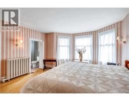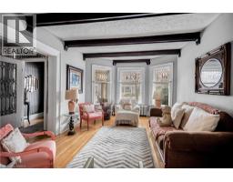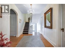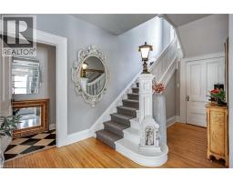 Location, location, location! Nestled in the heart of Brantford’s historic district, this impressive Victorian-era 2½-storey home is rich in character and timeless charm. Step through stunning leaded glass doors into a spacious, inviting foyer, where you’re immediately welcomed by three interconnected principal rooms and a striking Edwardian-style staircase. With over 3,300 sq. ft. of above-grade living space, the main floor features a formal living room, cozy sitting room with gas fireplace, elegant dining room with ornate chandelier, and an eat-in kitchen overlooking the backyard. From the detailed craftsmanship—intricate woodwork, curved and bay windows—to soaring ceilings, cove mouldings, and gleaming hardwood floors, every inch reflects classic architectural beauty. Offering 6 bedrooms and 4 bathrooms, this home is perfectly suited for a large or growing family. The second level hosts four spacious bedrooms, a built-in wardrobe dresser linen closet, a main bath with walk-in shower and double vanity, and a primary bedroom with a 2-piece ensuite. The third level adds two additional bedrooms and a versatile entertainment space—perfect for kids, guests, or a home office setup. The walk-out basement provides excellent potential for an in-law suite or accessory unit and already includes a 3-piece bathroom. Notable updates include a new boiler (2021), upgraded wiring with a 200-amp breaker panel, and durable fiberglass shingles. Set on a generous 0.21-acre lot, the property features a classic detached garage, a sprawling front porch, and a rear deck overlooking the in-ground pool—ideal for summer entertaining. Located in the sought-after Dufferin area, enjoy picturesque tree-lined streets just steps from parks, schools, tennis and pickleball courts, and the Brantford Golf & Country Club. (id:47351)