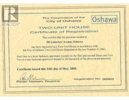 Zoning Description 2-unit House Registered With The City Of Oshawa!!