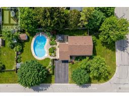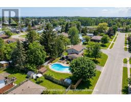 This well-maintained 4-bedroom home sits on a generous 0.21-acre corner lot surrounded by mature trees, offering a quiet, private setting just minutes from everything. The bright interior features hardwood flooring, comfortable living spaces, and a finished lower level ideal for growing families. Pride of ownership is evident throughout. Step outside to your own backyard oasis - an in-ground pool witha stone patio surround, lush landscaping, and multiple entertaining areas create the perfect setting for summer living. Recent updates include: Furnace & A/C (2020), Pool pump (2023), and Skimmer (2021). Walking distance to schools, a 15-minute walk to the lake, and only five minutes to the 401, an ideal location for commuters and families alike. Homes offering this combination of lot size, privacy, and pool rarely come available at this price point. (id:47351)