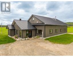 Barndominium on 35 acres to enjoy country living at 587 Watson Road, Echo Bay. Built in 2018, this modern design, bright 2800 sqft open-concept home offers mostly in-floor heating, 2-way fireplace in living room / dining room, 2 bedrooms on the mainfloor, one of them being the primary bedroom with walk-in closet and ensuite. Mainfloor laundry room and a separate 2-piece bath. The foyer offers ample room to hang up all outdoor clothing. Patio is facing south. Upstairs you will find 2 large bedrooms, a loft and an extra bath. There is a 32' x 40' detached shop/garage. Newly drilled well in 2017 has constant overflow. (id:47351)