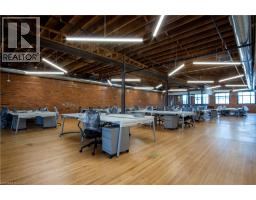 Stunning, turn-key penthouse office space in the heart of Hamilton’s central business district! This beautifully rebuilt building blends historic character with modern infrastructure, creating one of the most impressive office environments in the city. Exposed stone and brick walls, steel posts, and gleaming hardwood floors are complemented by glass-enclosed offices and meeting rooms for a sophisticated, contemporary feel. A spacious kitchen and seating area are located toward the rear of the unit, adjacent to a unique “yoga / conference room” featuring a roll-up garage door. Need a breath of fresh air? Step out onto the shared rooftop terrace for a break or informal meeting. Just steps from everything — courthouses, banks, Restaurant Row, transit, shopping, and more — this exceptional space is ideal for any company looking for an office that stands out for its quality, design, and employee experience. Note: Furniture pictured not included in listing offering. (id:47351)