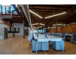 Stunning turn-key penthouse level office space in the heart of Hamilton's central business district! This beautifully rebuilt building offers historiccharm with modern infrastructure, making this unit stand out as one of the finest office spaces in Hamilton. The exposed stone and brick walls, steel posts, and gleaming hardwood floors contrast tastefully with the glass-enclosed offices and meeting rooms. A large kitchen and seating area are located toward the rear of the unit, next to the 'yoga (conference) room' with a roll-up garage door! For some fresh air, enjoy a break onthe shared rooftop terrace! Located steps from everything, including the court houses, banks, restaurant row, transit, shopping and more, this space is ideal for any company seeking an office space that truly stands out for quality, design, and employee experience! Note: furniture shown in photography belongs to prior tenant and not available for use. (id:47351)