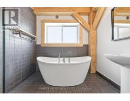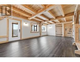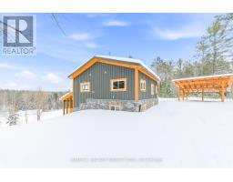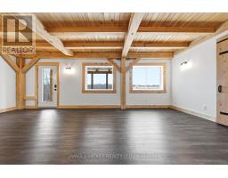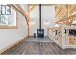 This stunning custom timber-frame bungalow blends craftsmanship, comfort, and modern efficiency. The open-concept main level showcases a beautifully designed kitchen with quartz countertops, premium built-in appliances, and an oversized island offering exceptional storage and expanded prep space. The main floor also includes a bright living room with a high-efficiency airtight wood stove, a spacious bedroom, and a stylish 4-piece bath. The fully finished lower level adds impressive living space with two additional bedrooms, a large 4-piece bathroom, a generous family room with walkout access to a sprawling cedar deck, and a dedicated laundry room complete with washer and dryer. Built with quality and longevity in mind, this home features an ICF foundation, a lifetime fiberglass hot water tank, a drilled well, geothermal heating and cooling, whole-house battery backup, and a detached double timber-frame carport. All of this is set in a peaceful country location with beautiful scenic views. Enjoy immediate access to extensive recreational opportunities, including nearby main snowmobile and ATV trails. For a full list of exceptional building features, please contact the listing brokerage. (id:47351)