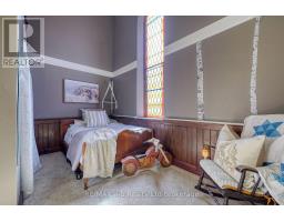Gorgeous character home with historic charm -Circa 1890. This impressive former church has been renovated into a residential home, offering over 3300 sq. ft. of finished living space across two levels. From its striking curb appeal to its blend of preserved natural finishes and modern updates, this one-of-a-kind property is sure to impress. Step inside to a welcoming front landing leading to the main living area, where you'll find a spacious living room, dining area, and a bar nook perfect for entertaining. The upper level also features two bedrooms, including a primary suite with a walk-in closet and a private walkout to the yard. The four piece bathroom is a very unique, showcasing soaring, cathedral style ceilings that highlight the homes historic character, along with a sunken tub, a truly unique and inviting space. The lower level offers even more versatility with a third bedroom, a recreational room currently used as a billiards area, and a convenient two piece bathroom...an ideal setup for extended family or guests. Original architectural details, including solid wood doors, stained glass windows, slate roof..all enhance this homes rich heritage. Numerous updates over the years completed to accommodate modern day conveniences: gas furnace, air conditoning, wiring, plumbing, double hung windows in lower level, water treatment devices, and most recent its own water source-a new drilled well. Outdoors, enjoy your own private backyard oasis featuring a hot tub covered by a gazebo, fire pit area, above ground pool, shed with hydro, and a fully fenced yard...perfect for relaxing or entertaining year round. Whether you're looking for a unique family home or a multi level generational living opportunity with separate entrances, this exceptional property delivers character, comfort, and endless possibilities. All Measurements taken from public record and iguide. (id:47351)
