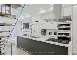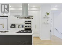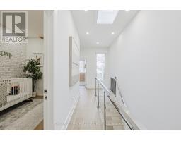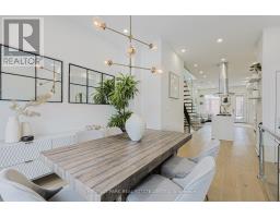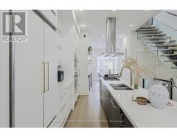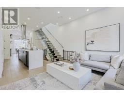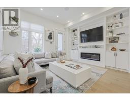 Exceptional luxury newer build, constructed with meticulous attention to detail throughout. This thoughtfully designed home offers a modern open-concept layout that's ideal for both everyday living and entertaining. The main floor is showered with natural light with large windows, and hardwood floors throughout. The custom-built kitchen is a standout feature with an oversized island offering exceptional storage and functionality. Stainless steel and built-in appliances including a 6 burner gas stove, magnificent quartz countertops, elegant gold fixtures, and carefully designed interior cabinet shelving. Combined with the kitchen, the living room is anchored by a built-in wall unit with electric fireplace and opens to the outdoor patio through a walk-out. Finishing the main floor is a spacious dining area. The upper level features three spacious bedrooms, including a primary bedroom with a three-piece ensuite bathroom complete with a skylight & heated floors. Custom closets by Closets by Design have been installed in the primary bedroom, nursery, main floor entrance, and basement, offering seamless organization and elevated design. Automatic Hunter Douglas blinds add comfort and convenience. The basement includes a walk-out to the backyard and showcases custom brick wall paneling, creating a warm and refined space. Access to the rare built-in garage provides exceptional everyday convenience. Recent exterior upgrades include a completely redesigned backyard, replacing the former wooden deck and grass yard with metal patio and stairs, concrete surfaces, and newly planted trees and landscaping. The front steps have been rebuilt and now include discreet built-in storage underneath for bins and outdoor items. Ideally located close to top public schools, TTC, and the area's best shops and restaurants, this property represents a truly outstanding opportunity. (id:47351)