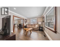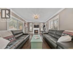 Welcome to 6 Decou Road, Simcoe - a charming and beautifully maintained 1.5-storey detached home set on a generous 0.34-acre lot offering privacy, mature surroundings, and exceptional outdoor space. This 2-bedroom, 2-bathroom home blends character and comfort with hardwood flooring throughout, a bright open-concept layout, and thoughtful updates. The main floor features a welcoming foyer, spacious living room, and an impressive open dining area with a large island, perfect for entertaining. The adjoining kitchen seamlessly flows into a cozy family room, highlighted by a gas fireplace, creating a warm and inviting atmosphere. The main-floor bedroom and full bath offer flexibility for guests or main-level living. Upstairs, the private primary retreat impresses with a walk-in closet, skylight, electric fireplace, and a 4-piece ensuite with convenient laundry, offering both comfort and functionality. Additional highlights include two fireplaces, central air, gas forced-air heating, and a full unfinished basement with additional laundry hookup and excellent storage potential. Outside, enjoy the expansive lot with landscaping, privacy features, a deck, awnings, and a detached garage with ample parking for up to 9 vehicles - ideal for hobbyists, families, or hosting guests. A shed provides extra outdoor storage. Located in a quiet yet convenient area close to schools, parks, shopping, a hospital, golf courses, trails, and public transit, this property offers the best of rural living with town amenities nearby. (id:47351)