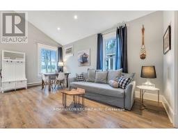 A Private Cottage Retreat Framed by Trees and Open Sky! Wake up to birdsong and a view of waving farm fields instead of neighbours. 6 Farm View Lane sits quietly along a one-way lane in the Woodlands area of East Lake Shores, where cottages peek through the trees and evening campfires glow nearby. Step from your screened-in porch into a gentle breeze scented with pine and wildflowers - the kind of setting that instantly slows your pace. Inside, vaulted ceilings and sunlight create a seamless flow through the open kitchen, dining, and living areas. Two comfortable bedrooms and two full baths (including a 3-piece ensuite) make space for family or guests. The cottage comes fully furnished in a relaxed coastal style, ready for summer mornings with coffee on the porch or lazy afternoons after the beach. East Lake Shores is a 3-season (April - October) gated waterfront community offering 1,500 ft of shoreline on East Lake, free use of canoes, kayaks, and paddleboards, and endless ways to play-swimming in the family or adult pools, yoga on the dock, pickleball rallies, kids' crafts, live-music nights, or quiet walks along wooded trails. This vacant-land condominium lets you own both your cottage and the land it's built on. Monthly fees of $663.03(billed year-round) cover TV, internet, water, sewer, lawn care, off-season snow removal, and full use of all amenities. Optional rental income is available through the on-site program or privately-no STA license required. Only minutes from Sandbanks Provincial Park, Picton, local wineries, and farm stands, this cottage captures the best of Prince Edward County living - nature, comfort, and community wrapped into one perfect getaway. (id:47351)