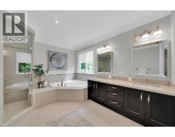 STUNNING MODEL HOME WITH OVER 4000 SQUARE FEET OF LUXURIOUS LIVING. Four Bedrooms, 5 Baths with in-ground, heated, saltwater pool. Located in most sought-after Cherrywood Estates among other Luxury Homes. Featuring: 10 foot ceilings, crown mouldings, recessed lighting, hardwood floors. The unique open-concept design & spacious principle rooms are ideally suited for hosting & entertaining. The gourmet kitchen with high-end appliances, abundant cabinetry, large island, butlers pantry & quartz counters is open to Great Room with soaring ceilings, gas fireplace & large windows overlooking the very private fenced backyard oasis with deck, in ground-heated pool & patios surrounded by mature trees. Main floor office, main floor laundry. Staircase to upper level leads to spacious primary bedroom suite with spa-like 5 PC ensuite bath, wall to wall built-in cabinetry & walk-in closet. Open staircase to lower-level leads to bright & beautifully finished rec room with 9 foot ceilings, bath & ample storage. OTHER FEATURES INCLUDE: C/air, C/vac, garage door opener, new washer and dryer (2023), new pool liner (2025), new pool heater (2021), finished basement (2020), custom drapery (2018), new laundry cabinetry (2023), Kitchen countertops (new 2018). Wine fridge, pool equipment, gas fireplace, built-in microwave, Jack & Jill 5PC bath. Less than 5 minutes to QEW, steps to park with short stroll to school & conveniences. This elegant home shows pride of ownership and is meticulously maintained inside & out with attention to every detail! (id:47351)