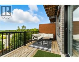 Welcome to one of Guelph’s most desirable south-end communities, where modern design meets natural beauty. Tucked away in a private, well-kept complex, this stunning 3-storey condo townhome offers a perfect blend of luxury and lifestyle—without the hassle of exterior maintenance or upkeep. Step inside to discover warm maple hardwood floors and elegant glass railings that create a bright, open feel throughout. The heart of the home is a chef-inspired kitchen, complete with an extended quartz island, new premium Bosch appliances, and a stylish complimenting backsplash—ideal for both everyday living and entertaining. From the balcony, soak in breathtaking sunset views surrounded by lush greenery, a backdrop that brings a sense of calm and relaxation. Upstairs, a thoughtfully designed layout pairs the convenience of dedicated laundry with 3 bedrooms that offer comfort, privacy, and functionality for the whole family. On the ground floor, a versatile fourth bedroom with a walkout-accompanied by a full bathroom provides endless options—perfect as a guest suite, home office, or private escape. Thoughtfully designed for today’s modern lifestyle, this home is a truly special offering in a location that puts you close to everything, yet feels like a retreat. (id:47351)