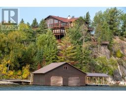 Located on Sabaskong Bay, Lake of the Woods, this exclusive estate promises an unparalleled living experience, blending luxurious comfort with the spirit of adventure that beckons every fishing and outdoor enthusiast. Spanning an impressive 6,500 sq. ft., this year-round sanctuary is thoughtfully designed to host large family gatherings or serve as a tranquil haven for the avid fisher. The heart of the home is a magnificent great room and dining area, boasting over 1,200 sq. ft. of space where panoramic views of the lake unfold through expansive windows. Vaulted ceilings and a majestic stone fireplace add to the room’s grandeur, making it an ideal setting for memorable entertainment. Adjacent to it, a gourmet kitchen with a dedicated dining space opens onto a screened porch, offering a dining experience amidst the beauty of nature. The outdoor space is a realm of relaxation, featuring a grilling area, hot tub, and fire pit for cozy evenings under the stars. The main residence has four bedrooms, each a private retreat with its own ensuite bathroom, promising comfort and seclusion. The master suite is a testament to luxury, with a fireplace, walk-in closet, and an ensuite bathroom equipped with a jacuzzi, shower, and double vanity. Two screened-in porches, including one accessible from the master bedroom, offer a unique opportunity for sleeping under the whisper of the breeze, enclosed by all-weather windows for year-round enjoyment. Accompanying the main residence is a charming 1,300 sq. ft. guest cabin, nestled among majestic white pines and perched at the water’s edge. It comprises three cozy bedrooms and two bathrooms, providing additional space for guests or as a serene lakeside retreat. The property’s crown jewel for fishing aficionados is the two-stall floating boathouse, complete with boat lifts and additional loft space, flanked by two covered boat slips, ensuring that your fishing expeditions start and end with utmost ease. (id:47351)