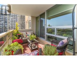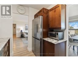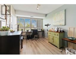 Welcome to The Oaks, a highly regarded Falgarwood condominium community. This tastefully renovated suite offers 1044 sq. ft., 2 bedrooms and 1.5 bathrooms of thoughtfully designed living space. The beautifully updated kitchen is the heart of the home, featuring new SS appliances (2024), granite countertops, pot drawers and built-in wine rack. A separate sun filled dining room and an inviting living room which opens to a large, private balcony with unobstructed southern exposure and lake views. Recent major updates ensure a move-in ready experience: 2018 windows, balconies 2016/17, both bathrooms renovated in 2020 (including a 2-piece ensuite), updated electrical panel, and a 2015 furnace/ AC. The interior boasts luxurious laminate flooring throughout, a space saving LG thinQ dual washer/dryer, Hunter Douglas solar blinds, California shutters in both bedrooms, and functional California closet in the primary bedroom. The meticulously managed, non-smoking building offers an impressive amenity array: indoor pool, saunas, fitness centre, golf room, workshop, and party room. Underground electric vehicle (EV) charging stations are available. One underground parking spot and locker are included. Enjoy a truly maintenance-free lifestyle perfectly nestled near ravine trails, shopping, restaurants, Sheridan College, and major highways and local bus routes within 100 metres of the building. (id:47351)
