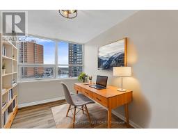 Bright, spacious, and newly renovated, this three-bedroom plus den suite offers almost 1500 square feet of modern living space with the flexibility today's lifestyles demand. Open-concept living and dining areas create an easy sense of flow, extending to a large covered balcony perfectly suited for entertaining and enjoying evening sunsets. The enclosed den, framed by French doors and large windows, is ideal for a home office or quiet retreat, while the updated eat-in kitchen provides generous counter space and storage for everyday living. Down the hall, the bedrooms are well proportioned and private, including a primary suite with walk-in closet and a modern ensuite designed for relaxation. Clean lines, industrial-inspired bi-fold doors and lighting compliment this thoughtfully designed space. Residents enjoy an impressive array of amenities including indoor and outdoor pools, tennis and basketball courts, an outdoor barbecue area, party and craft rooms, bike storage, guest suites, a dog run, playground, ample visitor parking, and an underground car wash-supporting an active, connected community lifestyle, while maintenance fees cover all utilities. Beautifully reimagined with contemporary finishes and a carpet-free layout, this home offers style, space, and function in a centrally located building near shopping, transit, major highways, and Pearson Airport, making daily life and commuting effortless. (id:47351)